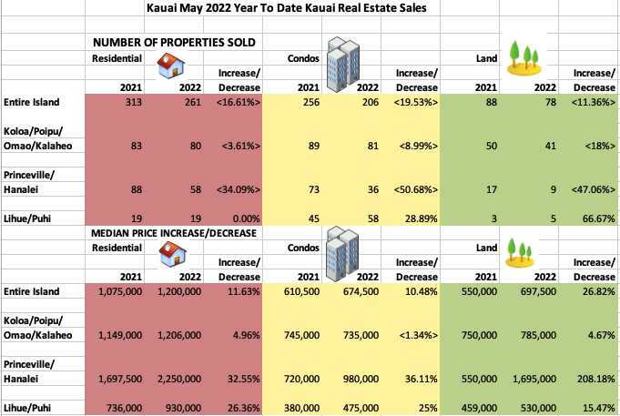 Kauai Real Estate Year To Date 2022 vs 2021