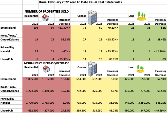 Kauai Real Estate 2022 vs 2021