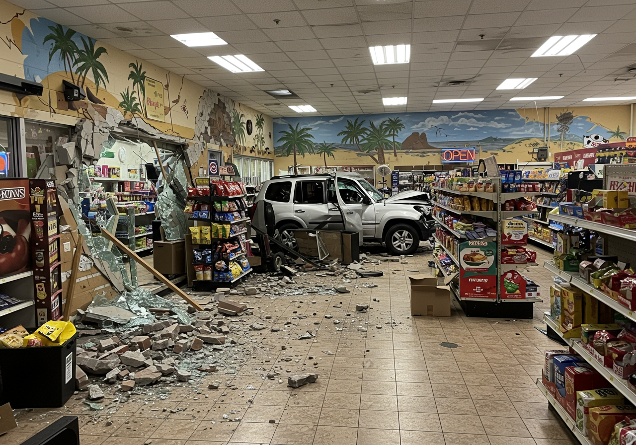 A car crashed through Sueokas here in Poipu Beach, the cause of the crash is still under investigation. No one was reported being hurt.