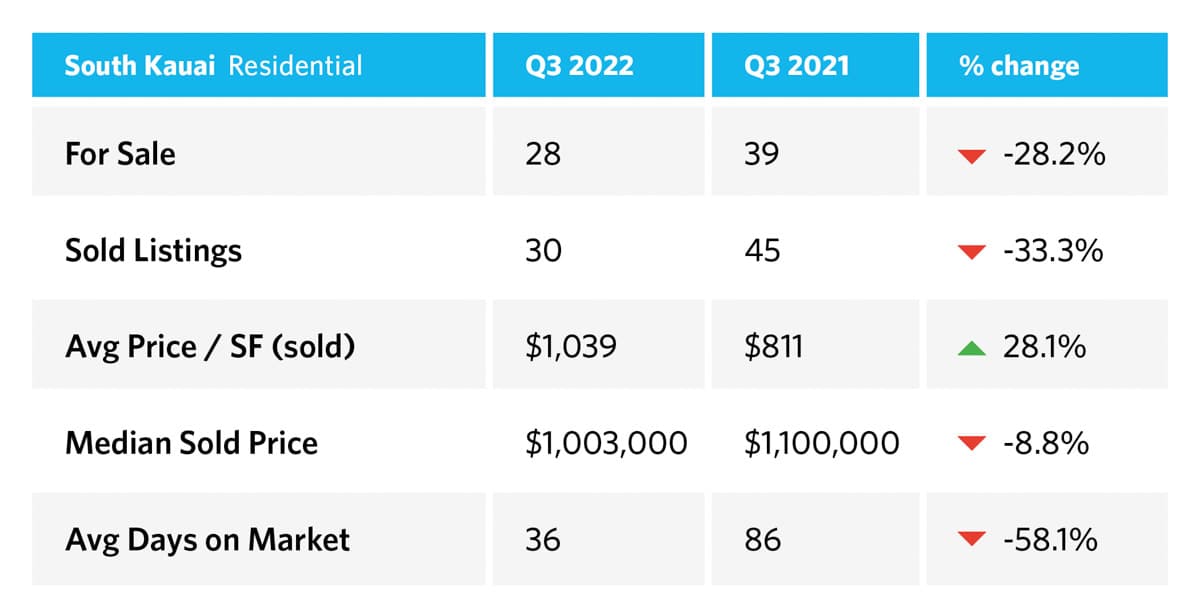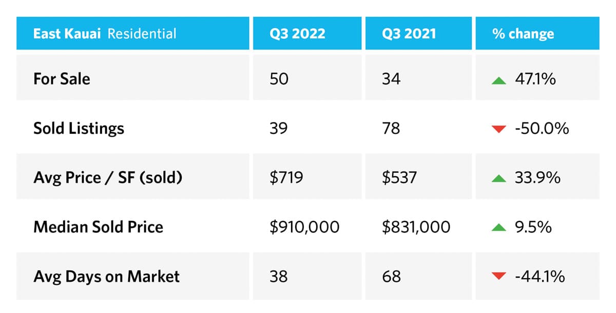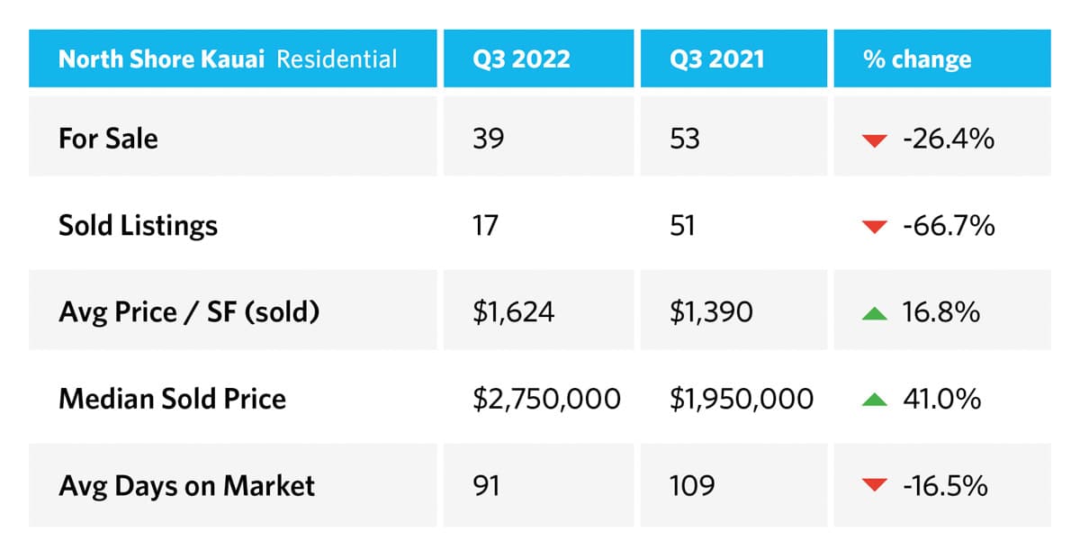End Of Third Quarter Kauai Real Estate Report 2022 vs 2021