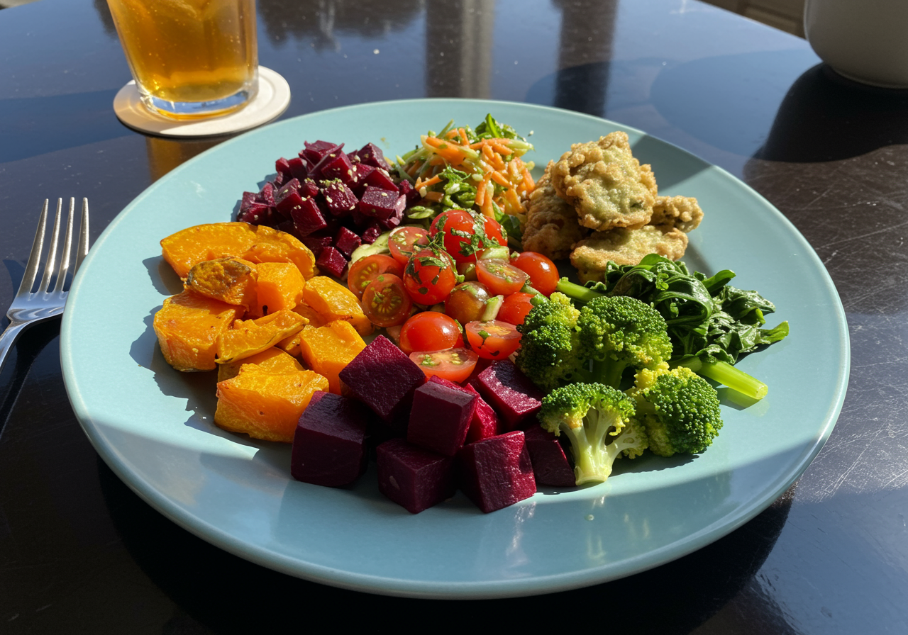 I had the Slow-Roasted Local Beets which had tomato cilantro salad, local roasted butternut squash, wilted arugula and tempura broccoli. It was to die for, I don’t know what they spiced up the cherry tomatoes with but it had a kick to it and it was delicious when I ate one of the halves with another veggie. YUM!