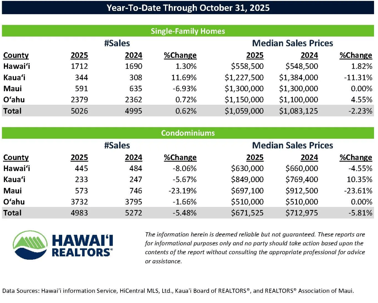 The numbers are in for the first 10 months of this year for the state of Hawaii. Maui continues on their recovery from the Lahaina fires as their home and condominium sales are down.