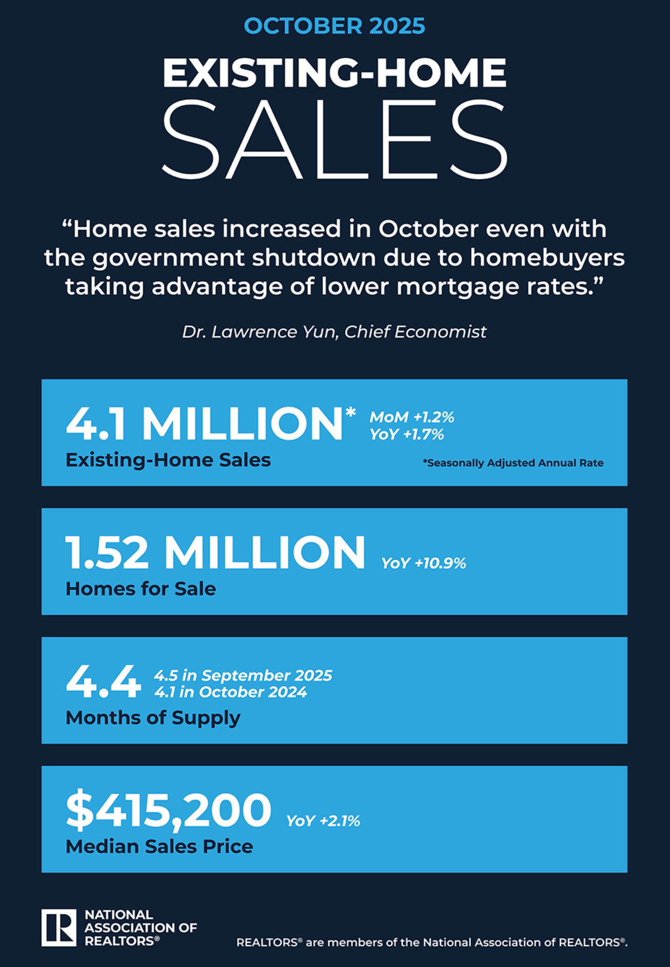 Here is what Lawrence Yun, the Chief Economist for the National Association of Realtors had to say about first time home buyers and renters; “Home sales increased in October even with the government shutdown due to homebuyers taking advantage of lower mortgage rates. First-time homebuyers are facing headwinds in the Northeast due to a lack of supply and in the West because of high home prices. First-time buyers fared better in the Midwest because of the plentiful supply of affordable houses and in the South because there is sufficient inventory. Rents are decelerating which will reduce inflation and encourage the Federal Reserve to continue cutting rates and pulling back their quantitative tightening. This will help bring more homebuyers into the market since the Fed rate has an indirect impact on mortgage rates."