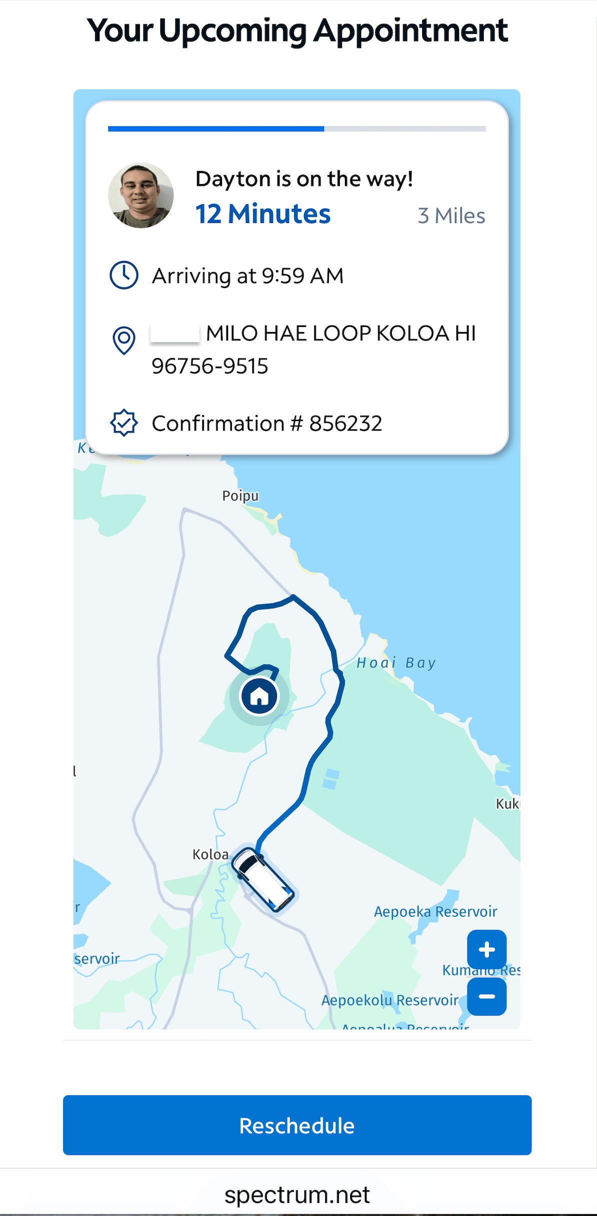 Not long afterwards we had another problem on a Tuesday night and I got a lovely woman from Ohio who couldn’t fix the problem but were able to send someone out the next day between 10 and 11. She said they would text me an update which they did and I could track our technician just like you can your Uber Driver.