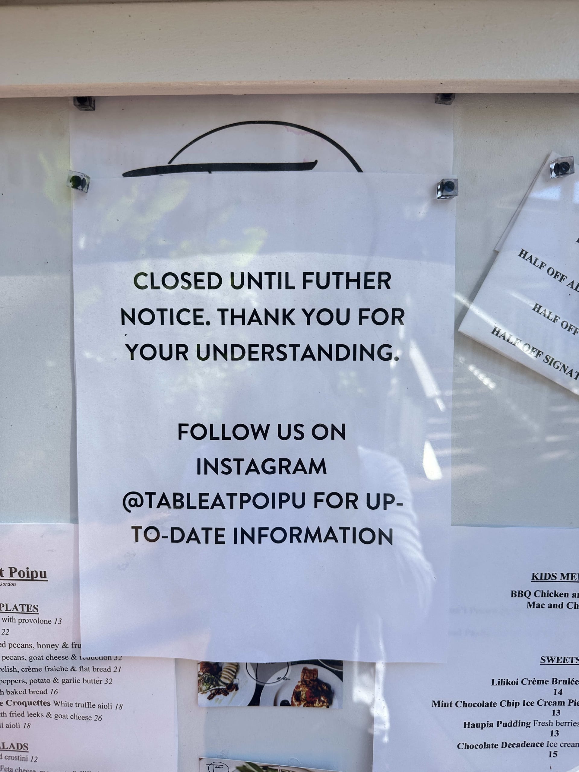 At the Kukui’ula Shopping Village the restaurant “Tables” has been shut down until further notice. Lapperts had very limited hours this last week. All this is not because there is a lack of business, far from it. It’s a lack of workers.